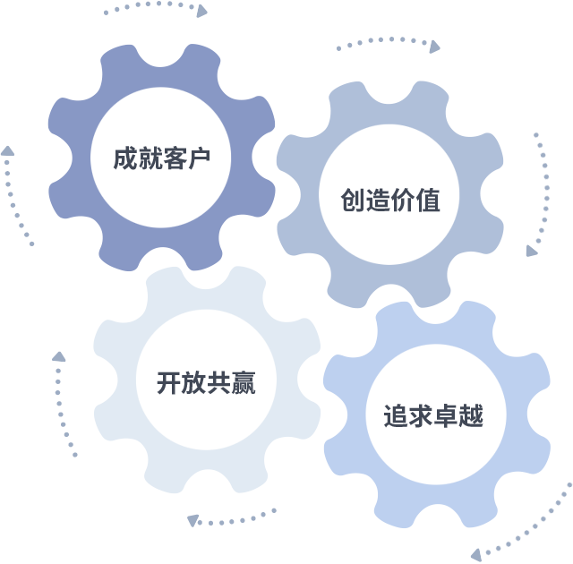 成就客户是一切决策的出发点,创造价值是衡量所有工作的标准,追求卓越是意昂娱乐做事做人的态度,开放共赢是意昂娱乐的格局也是最终的结果。价值观的齿轮环环相扣,推动着组织里的每个人不断向前。